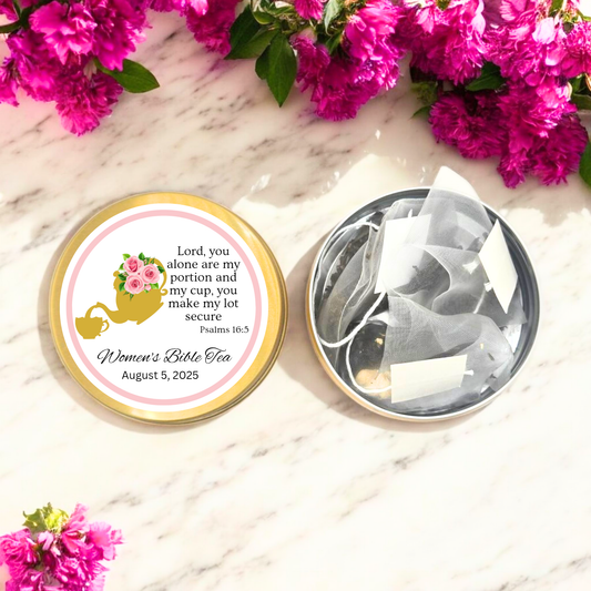 Teapot and Teacup Women's Bible Study Tea Tin Favor (Set of 10)