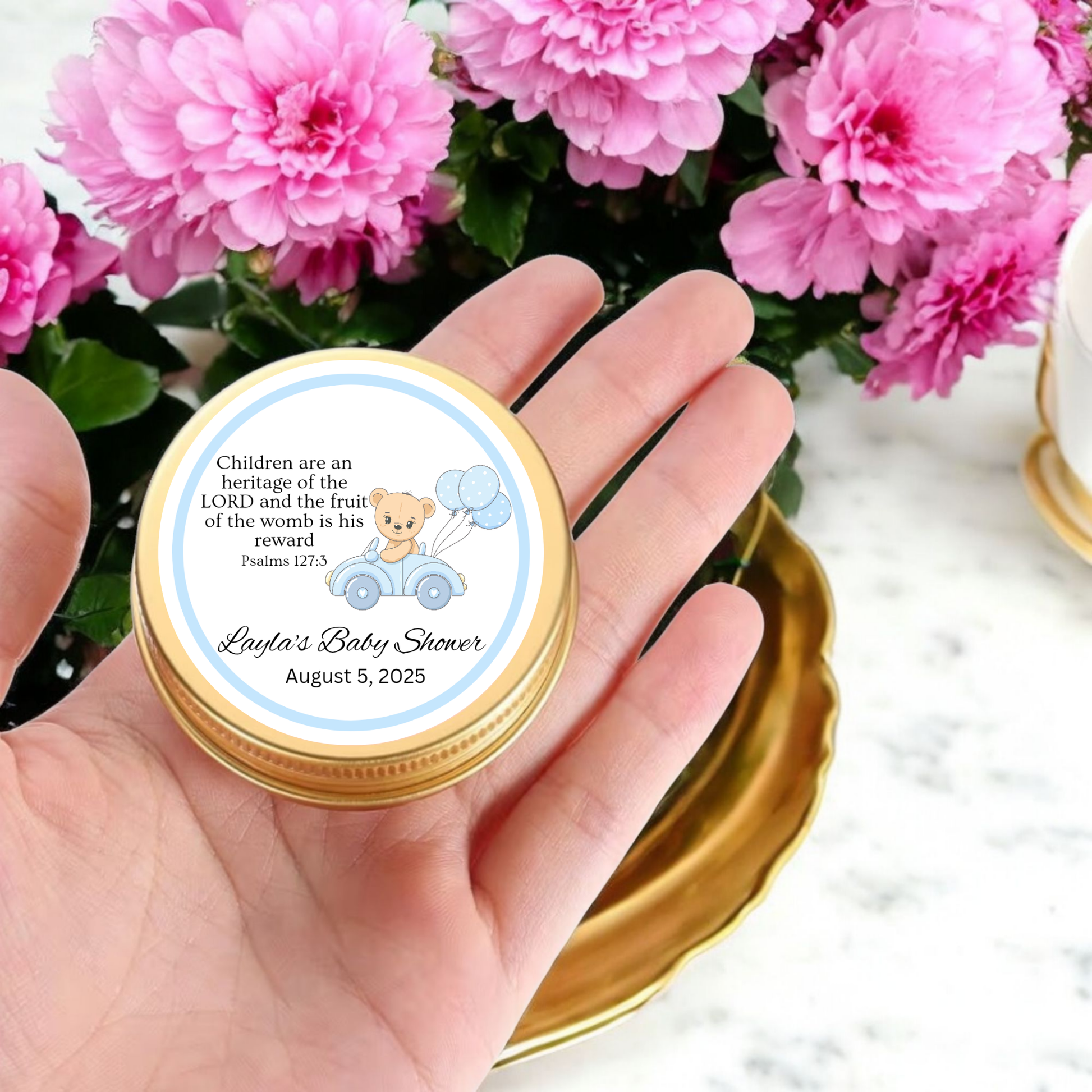 Baby Shower / Gender Reveal Bible Verse Tea Tin Party Favor (Set of 10)