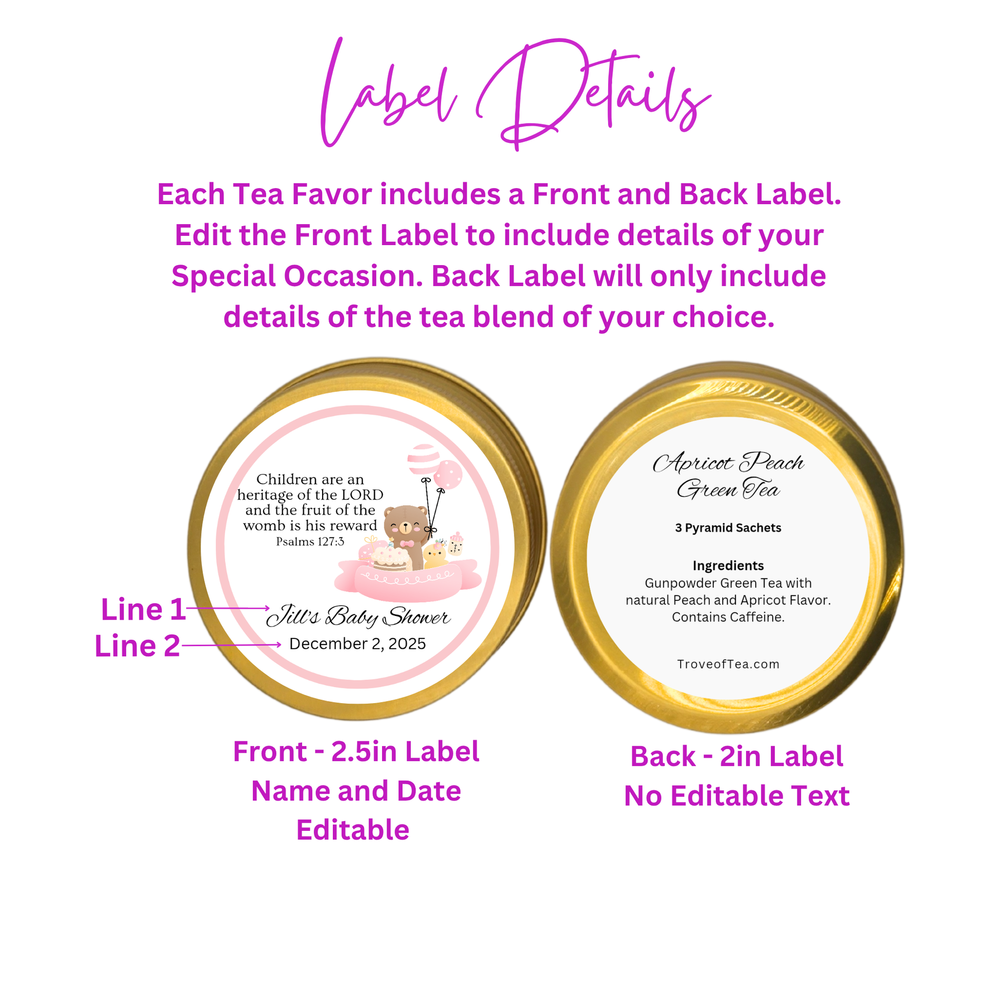 Celebrate the joy of new life with this baby shower tea favor—a sweet blend of faith, warmth, and charm for honoring new parents, new mothers, and their little blessing. Perfect for a baby gender reveal, boy baby shower, or pink baby shower, this keepsake adds meaning to every moment.