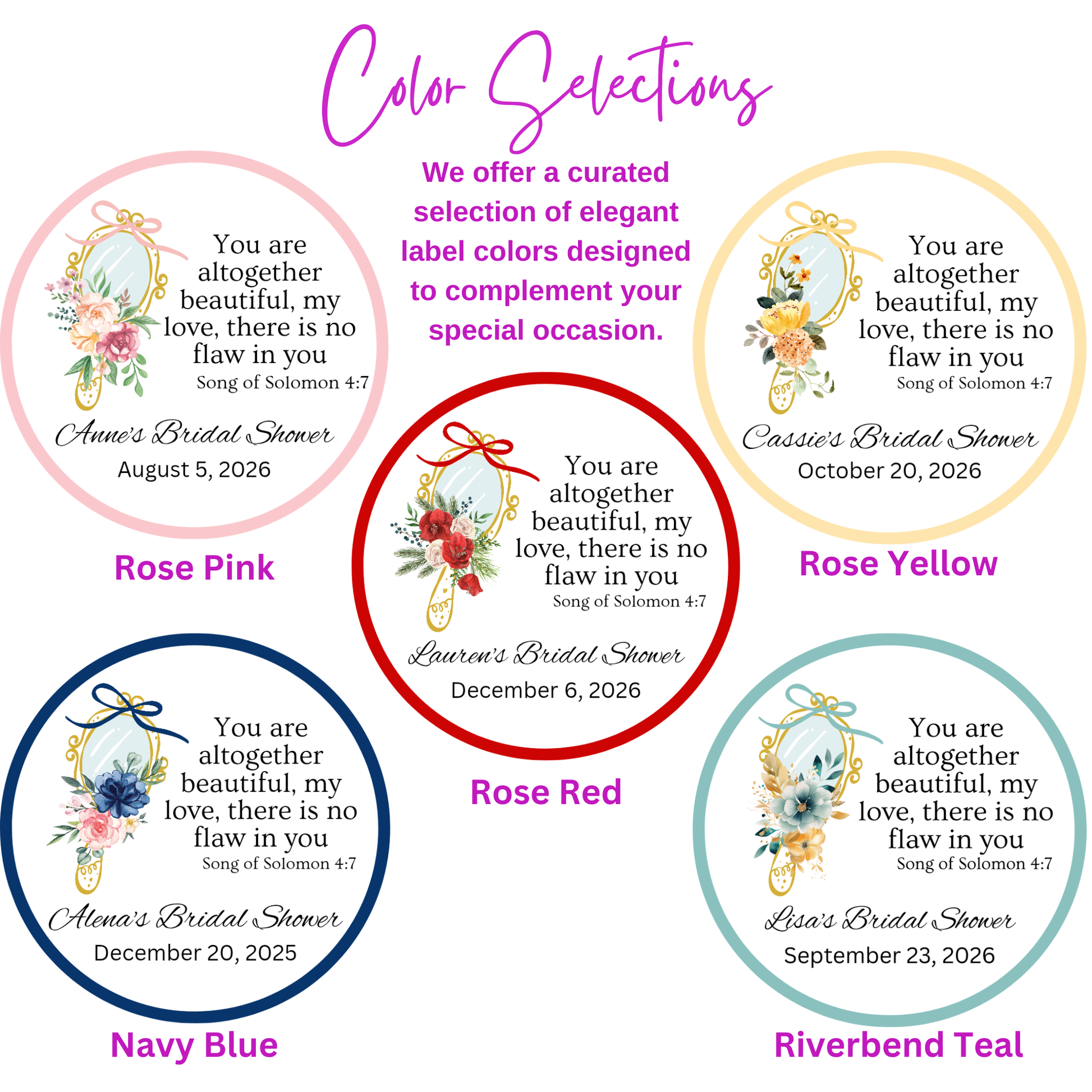 Celebrate love and faith with these elegant bridal shower favors, beautifully designed for a bridal tea party, bridal afternoon tea, or bridal shower tea gathering. Each favor is wrapped in a clear bag and features a Bible verse label from Song of Solomon 4:7, creating meaningful bridal tea favors that honor the bride while sharing encouragement with every guest. Inside, you’ll find a biodegradable sachet of premium tea bags in your choice of herbal, green, oolong, or black tea, making them perfect keepsakes for a spring tea party, engagement tea party, or floral tea party celebration. Ideal for place settings or favor tables, these thoughtful gifts also serve as beautiful womens tea party favors for a ladies tea party or religious tea party, leaving guests with a warm reminder of faith, love, and new beginnings.