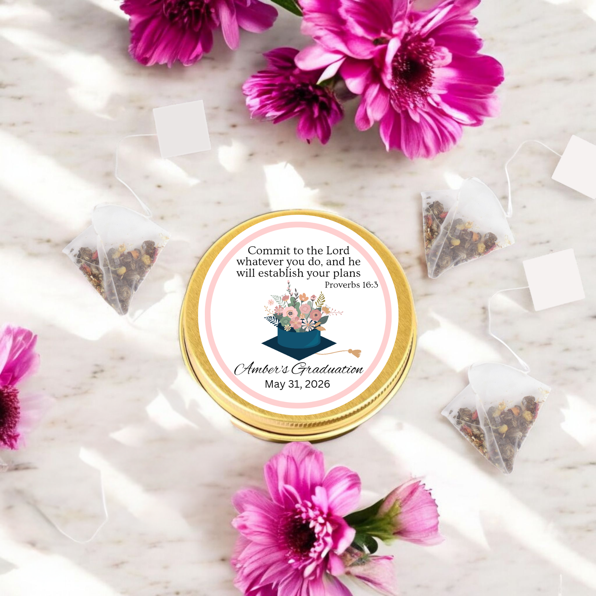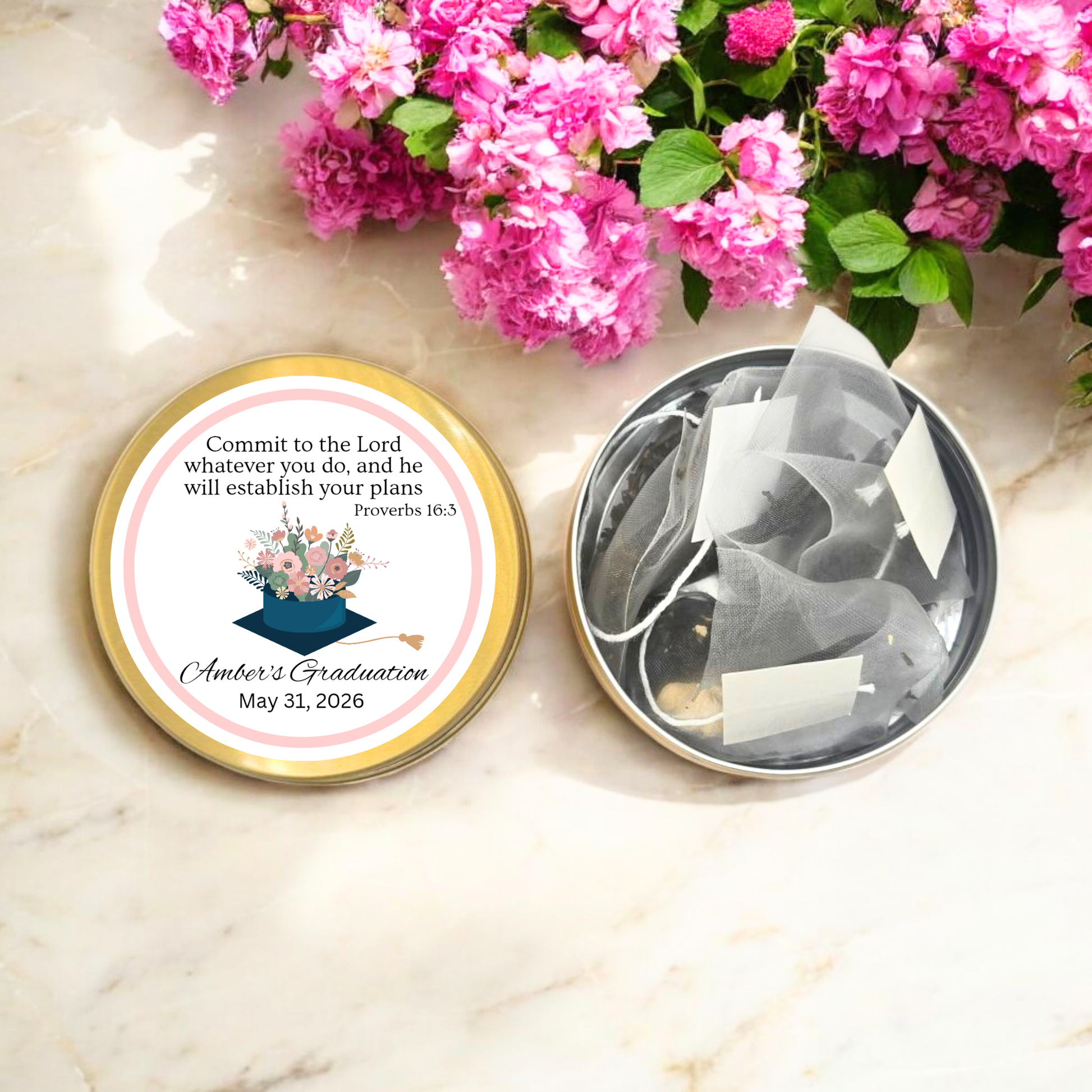 Floral Graduation Party Bible Verse Tea Tin Favor (Set of 10)
