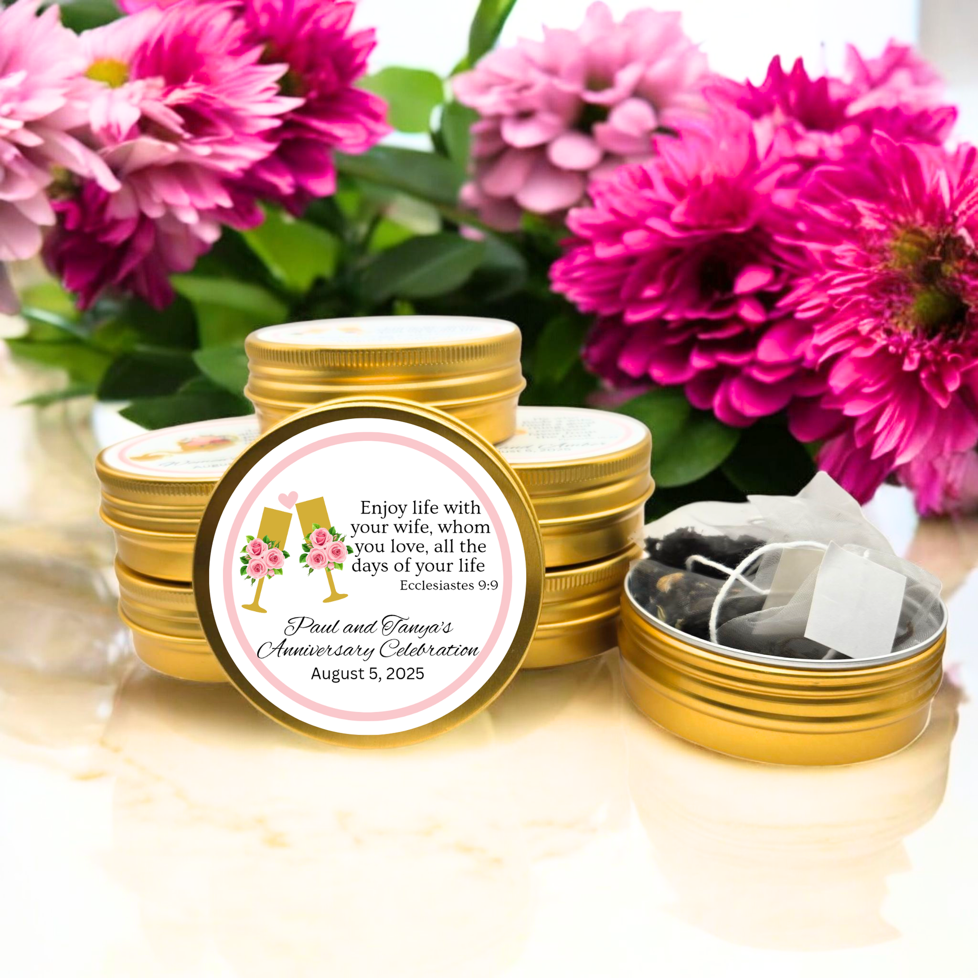 Make your anniversary party unforgettable with elegant tea party favors that blend love, faith, and flavor. These faith filled favor gifts are perfect for a vow renewal, fall wedding favors, or meaningful wedding favors your guests will treasure.