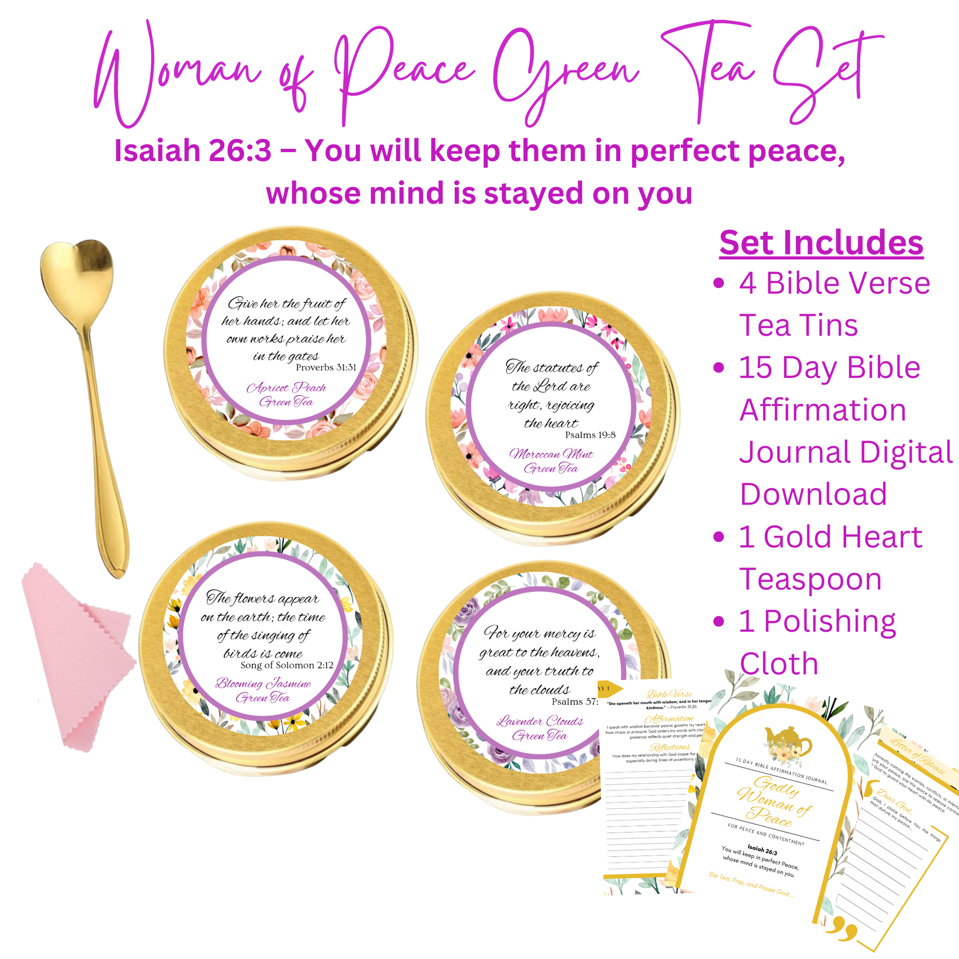 Godly Woman of Peace Green Tea Sampler Gift with Bible Verse Tins of Tea
