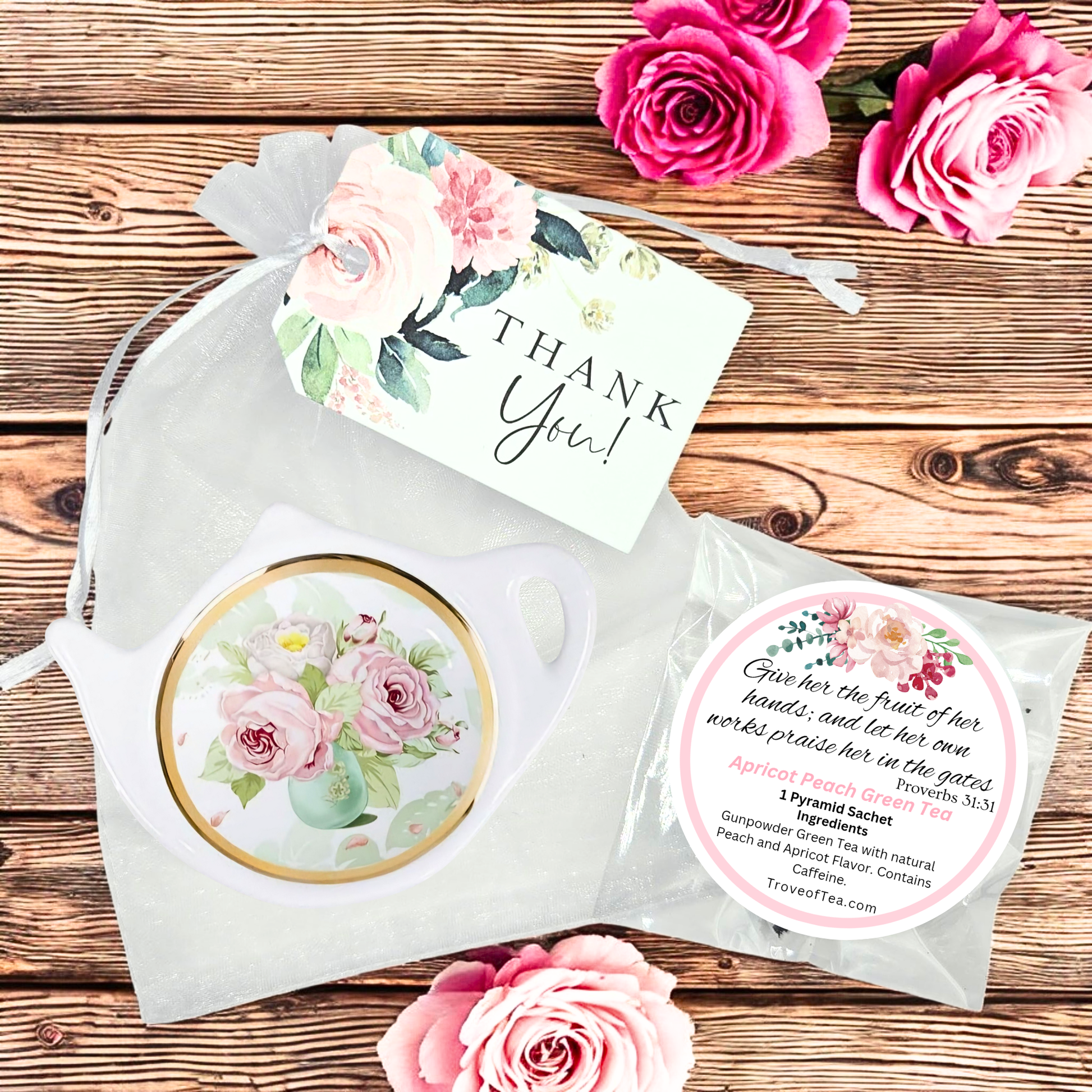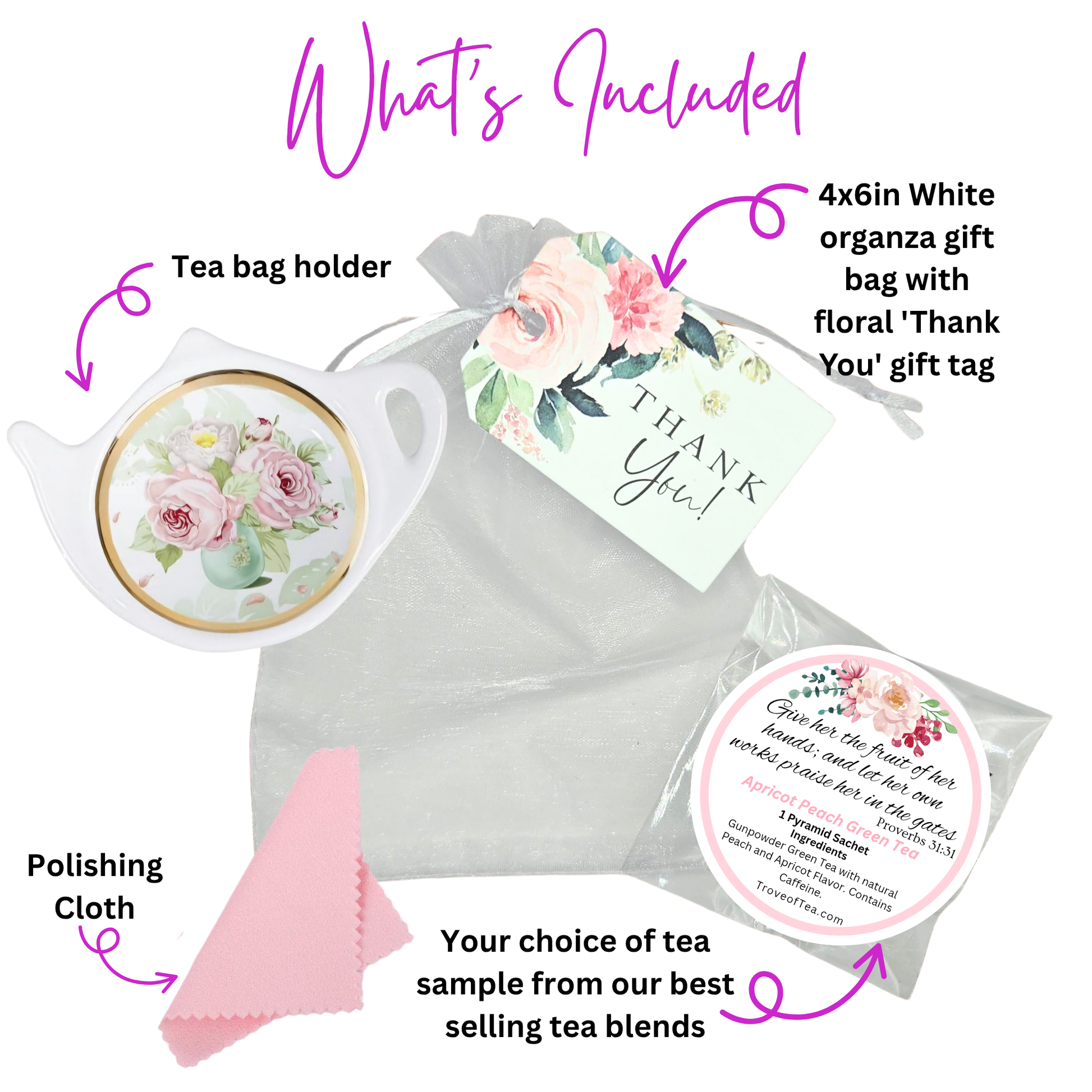 Each rest is elegantly packaged with a premium tea sachet and Bible verse label, creating a memorable and practical tea shower favor. Whether used as a tea bag caddy or displayed at place settings, it’s the perfect keepsake for those seeking beauty, utility, and a touch of faith.