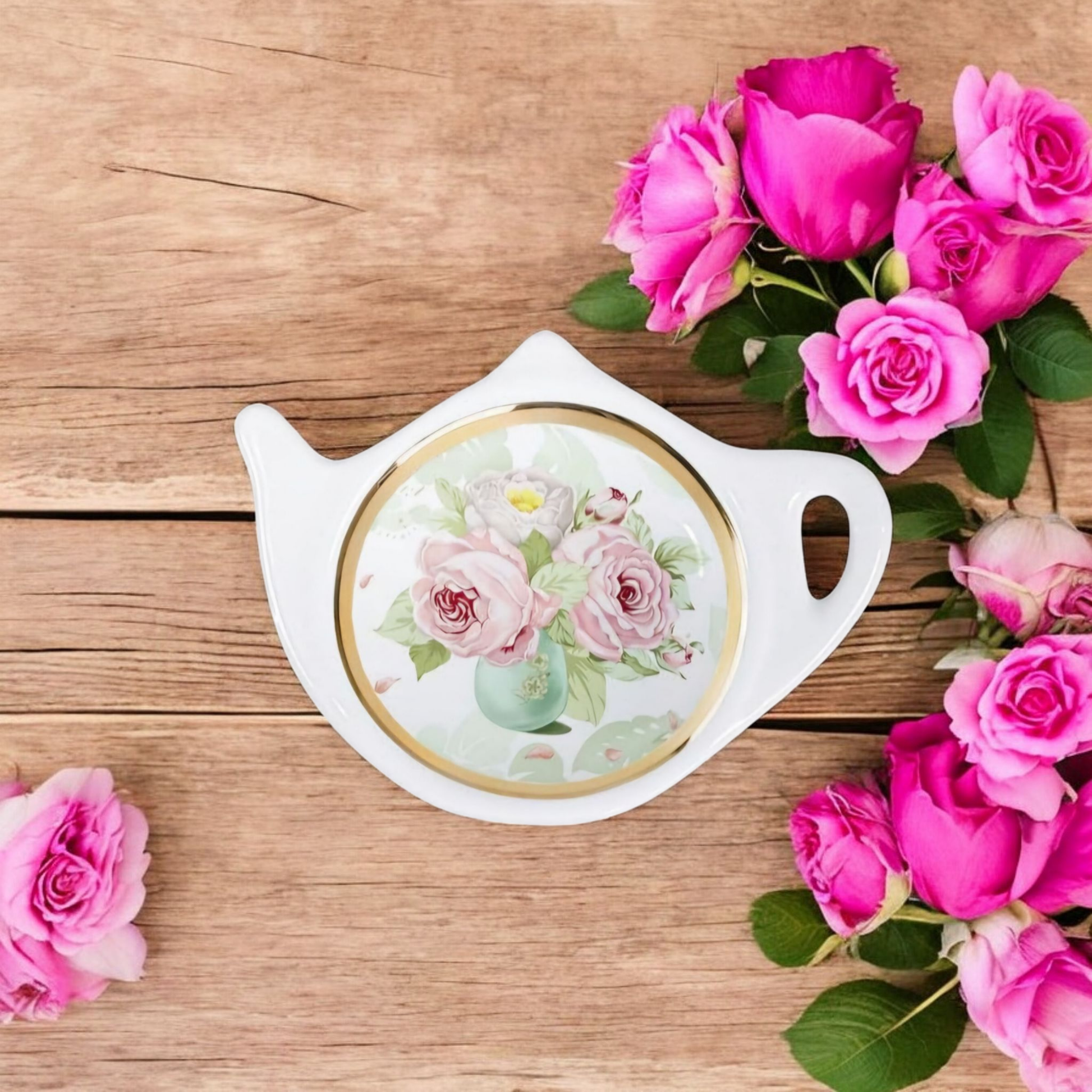 Beautifully crafted, this tea bag holder dish pairs perfectly with cute teaspoons and adds charm to your table setting decor, whether for a bridal shower favor, tea party decorations, or small group gatherings. It also functions well as a spoon holder, tea bag plate, or tea bag coaster, fitting effortlessly into any tea accessories collection.