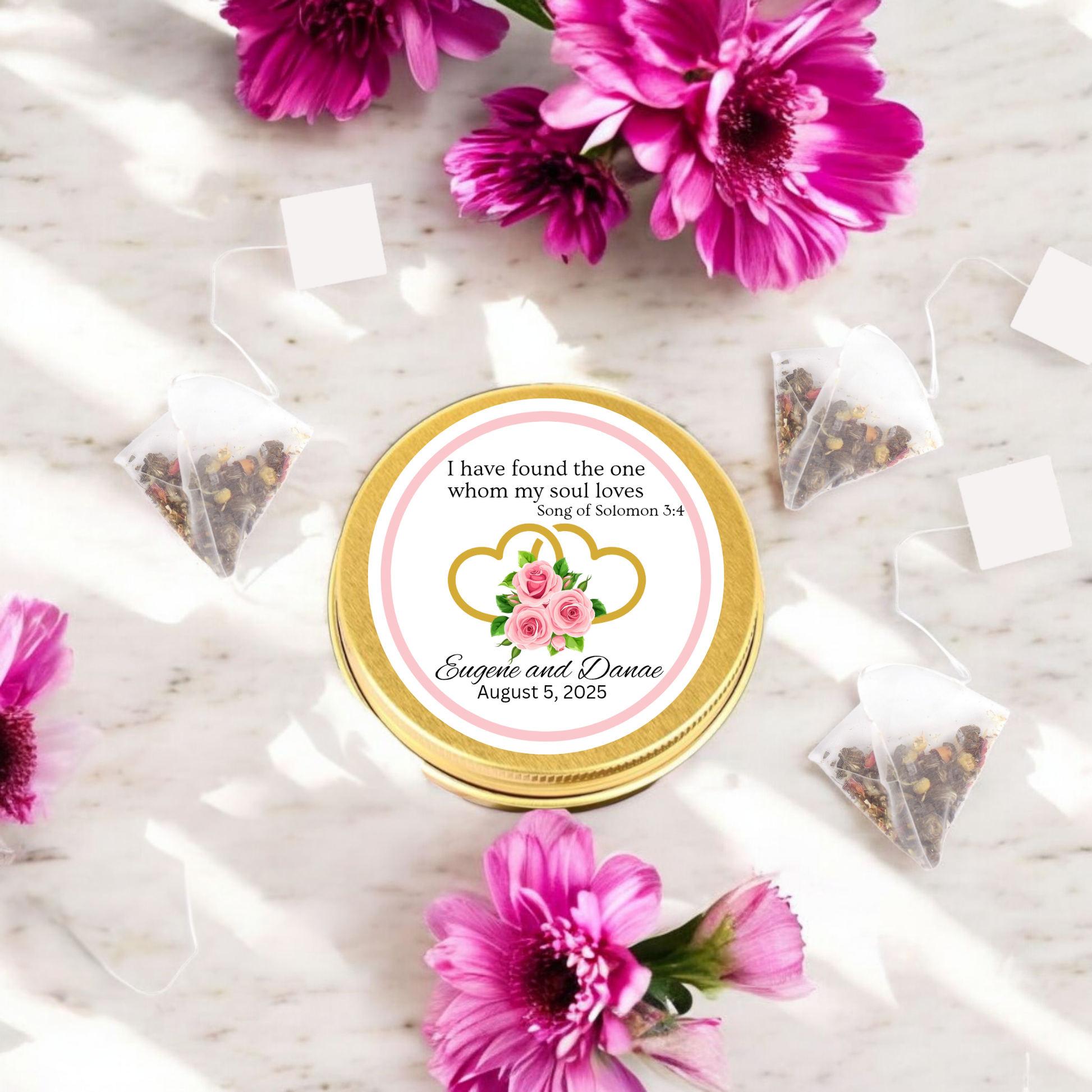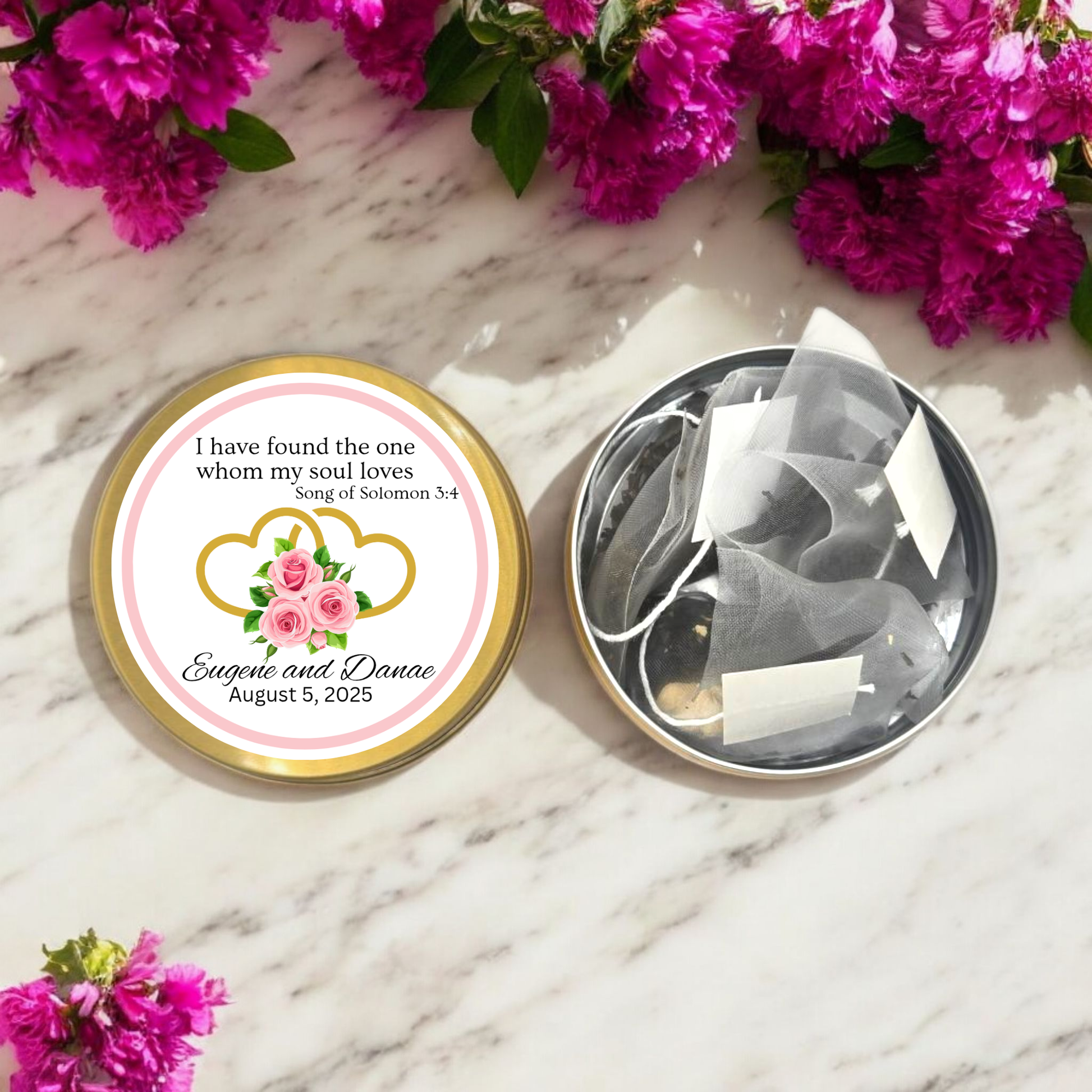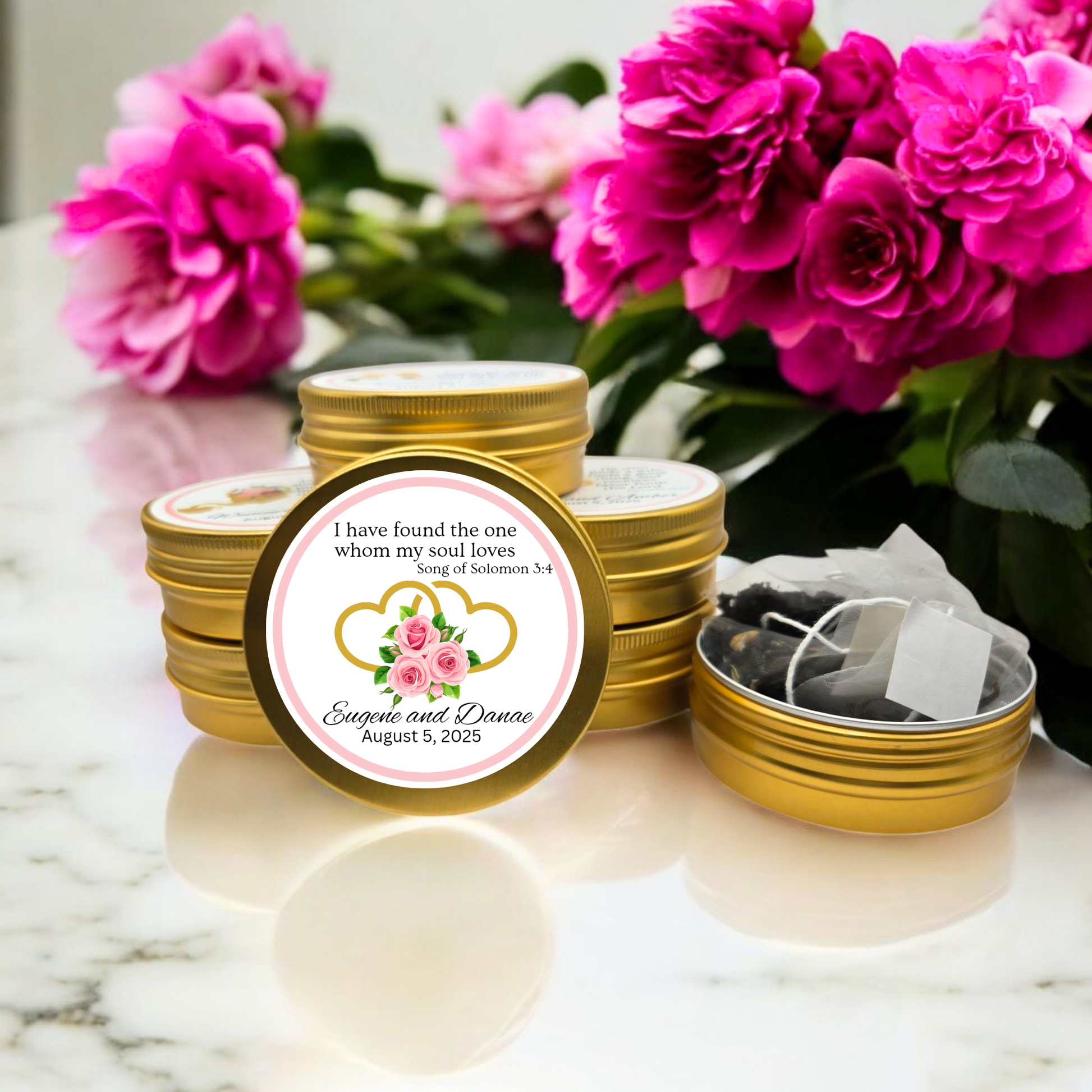 Meaningful Wedding Tea Favor – A Faith-Filled Keepsake for Your Guests. Celebrate love and faith with our elegant wedding favor tea tin—a perfect blend of beauty, scripture, and flavor. These wedding reception gifts for guests are more than just tokens—they’re heartfelt, personalized gifts that leave a lasting impression.