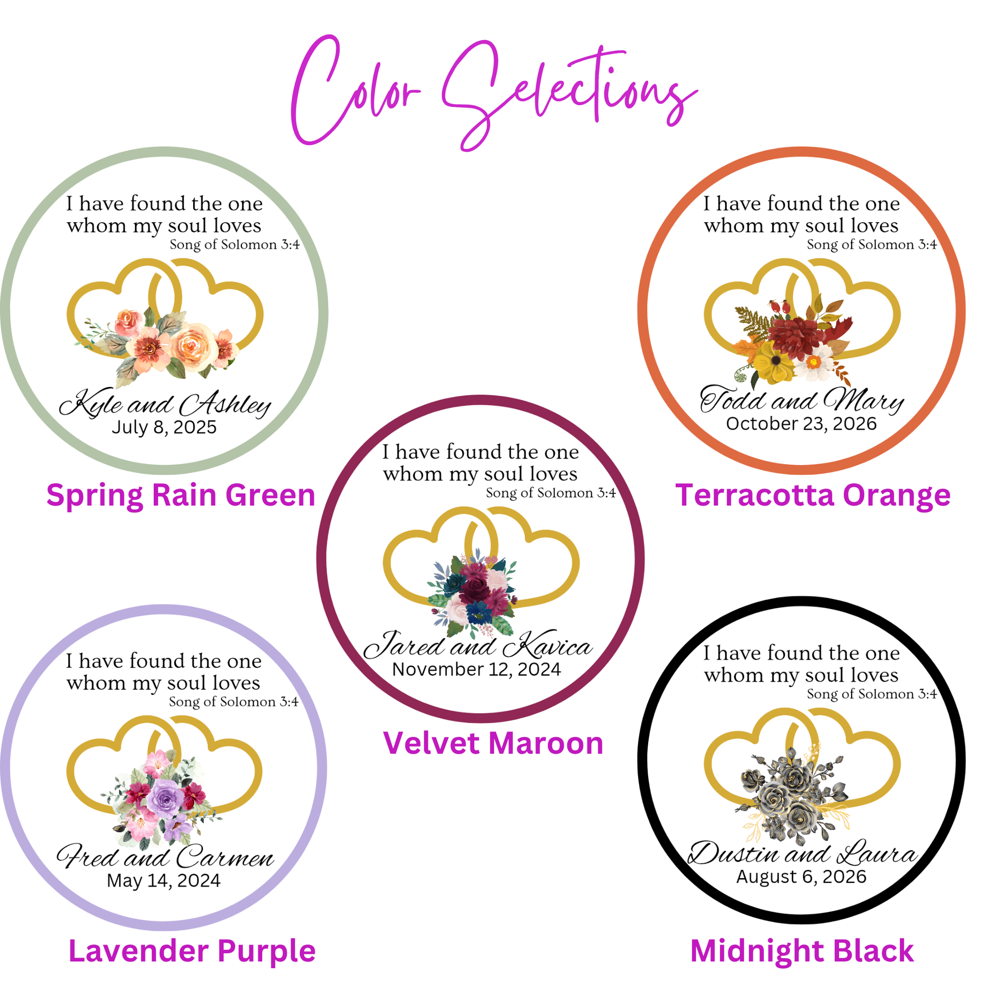 💌 Faith Wedding Favor with Unique Label Design - Each tin features a custom label with an elegant font, couple's names, date, and Bible scripture from Song of Solomon 3:4 that reflects love and blessings. A beautiful way to share your values and celebrate your day.