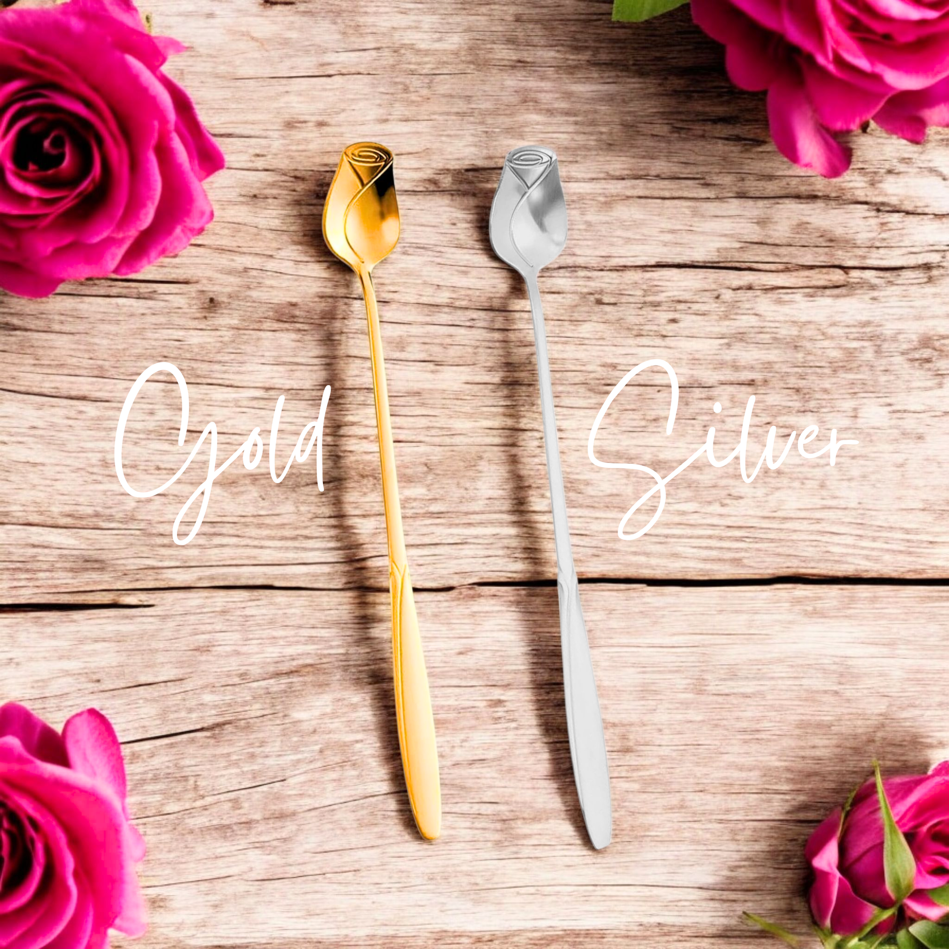 Long Beautiful Rose Bud Teaspoon - 7 in