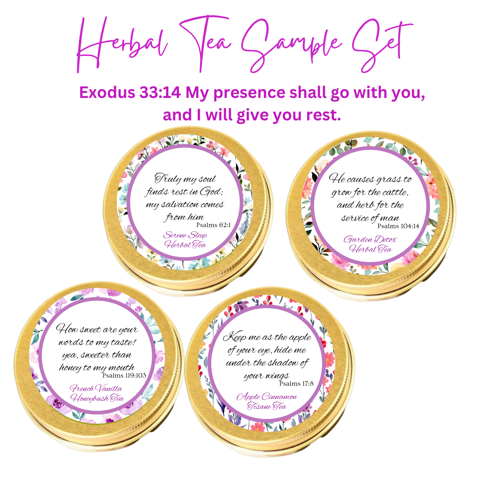 Embrace sacred stillness with our Rest in God Herbal Tea Sampler—a calming collection of bible verse herbal tea blends crafted for the godly woman simply seeking to rest. This tea sample gift box includes 4 soothing tea tins, each filled with comforting scripture tea bags that invite you to slow down, breathe deep, and draw near to His presence.