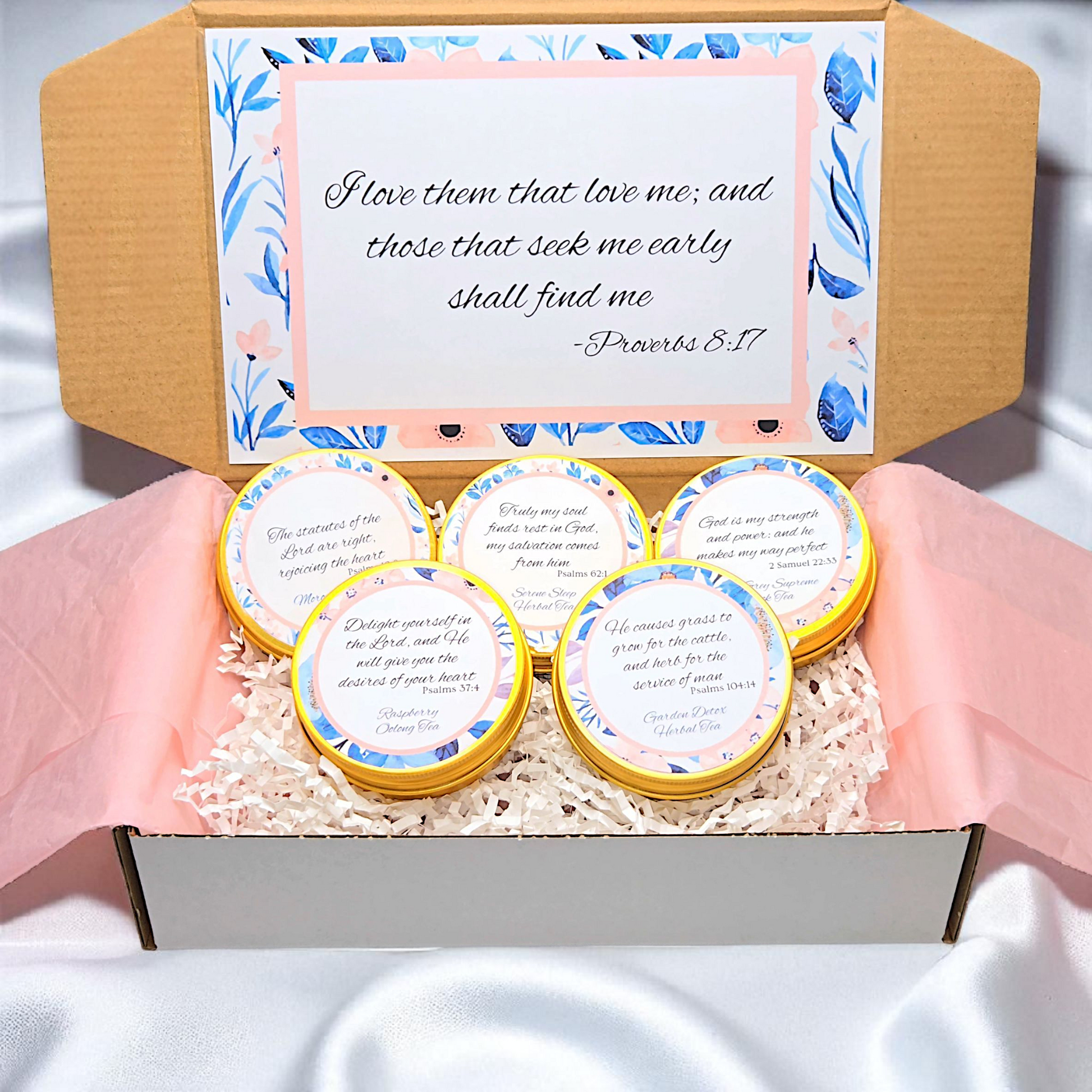 Our Seek and Find Bible Verse Tea Sampler Set is a comforting reminder to draw near to God, even in the quiet chill of winter. This Scripture-based tea tin box includes 5 decorative tea tins filled with thoughtfully micro-blended teas, each packed in bio-degradable pyramid sachets for easy steeping. Inside you’ll find a soul-warming mix of oolong tea bags, chamomile tea bags, winter earl grey tea, and more—all chosen to support reflection, warmth, and intention during the colder months. Whether you’re gifting this during the winter season or creating your own sacred tea in winter routine, each blend encourages you to slow down and seek Him early.
