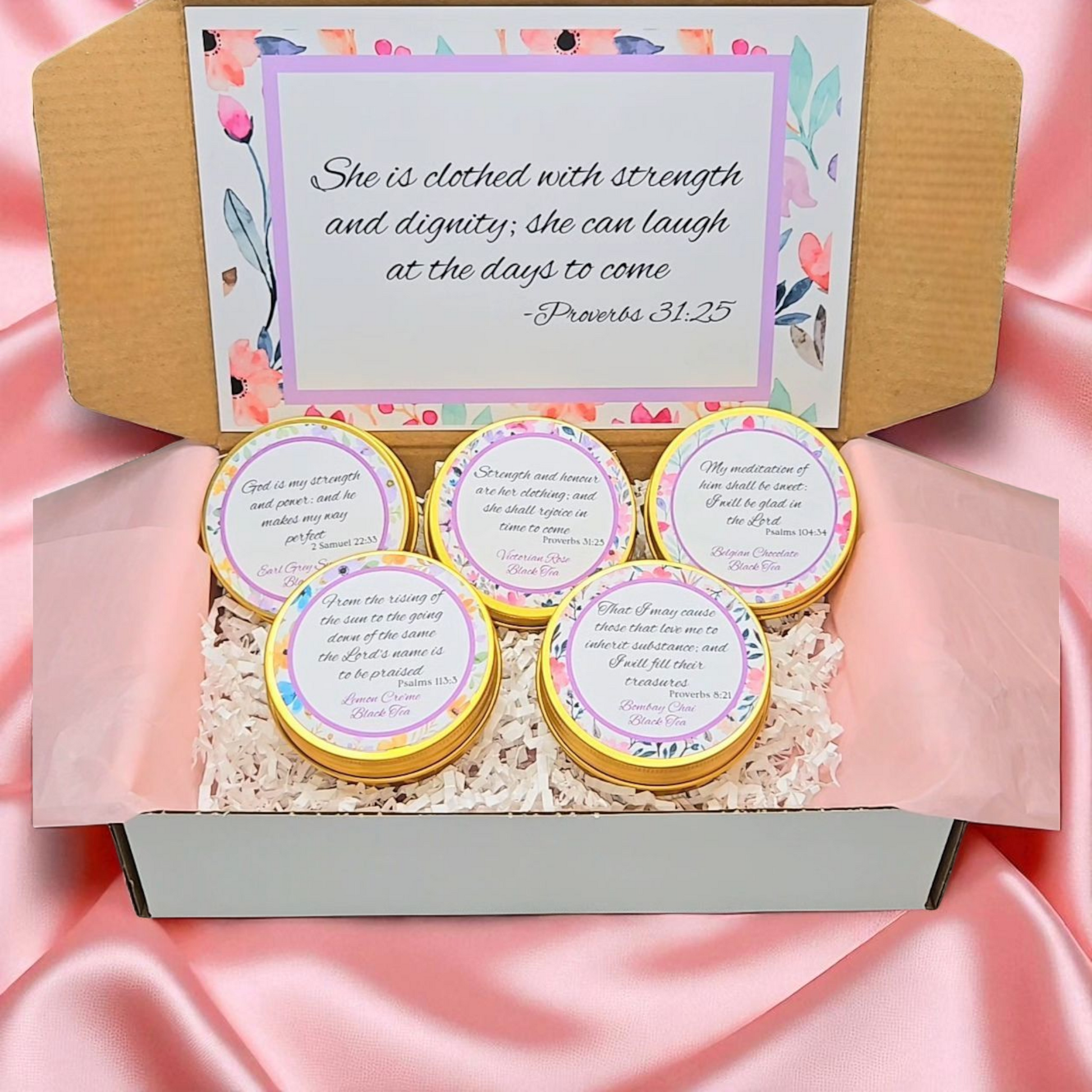 Strength and Honor Black Tea Sampler with Scripture Verse Tea Tins