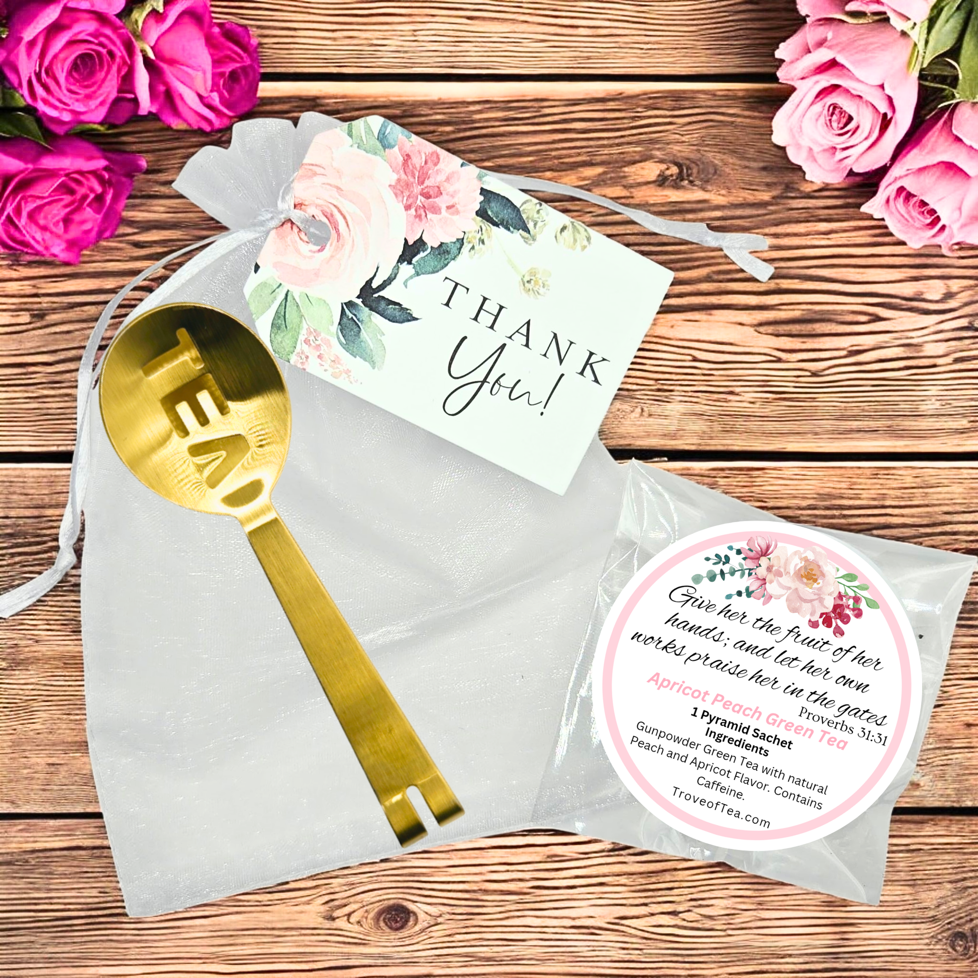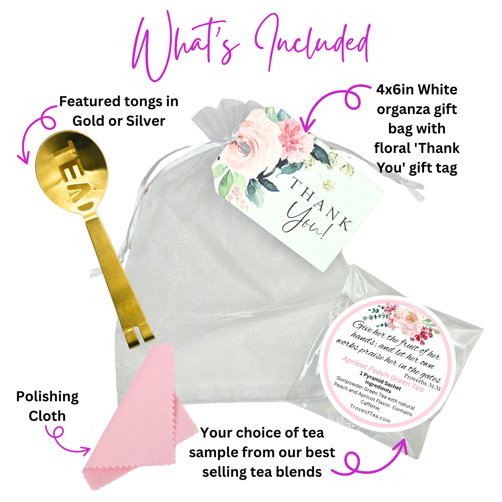 Each Favor comes in your choice of either 🎨 Gold or Silver. Each favor comes with your choice of ☕️ Tea Sample.