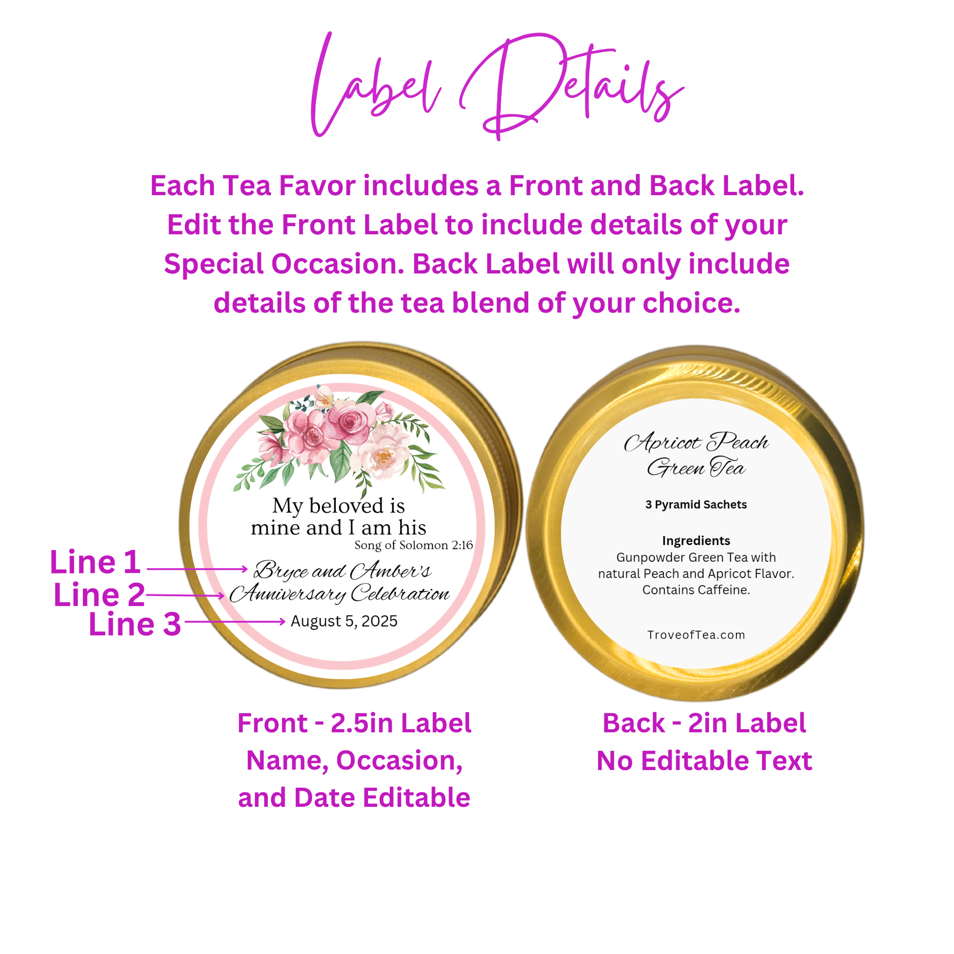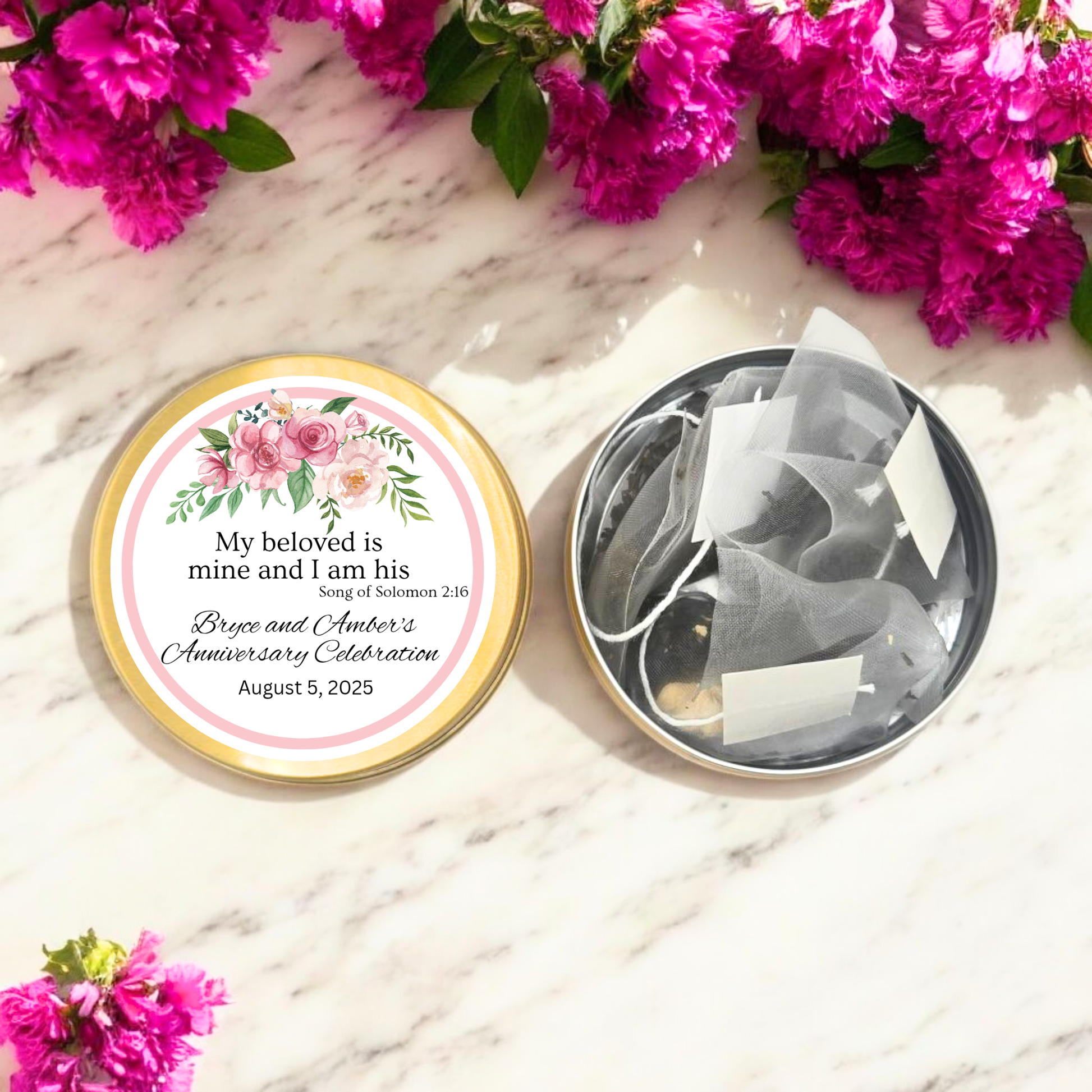 Top Floral Wedding Engagement Party Bible Verse Tin Tea Favor (Set of 10)