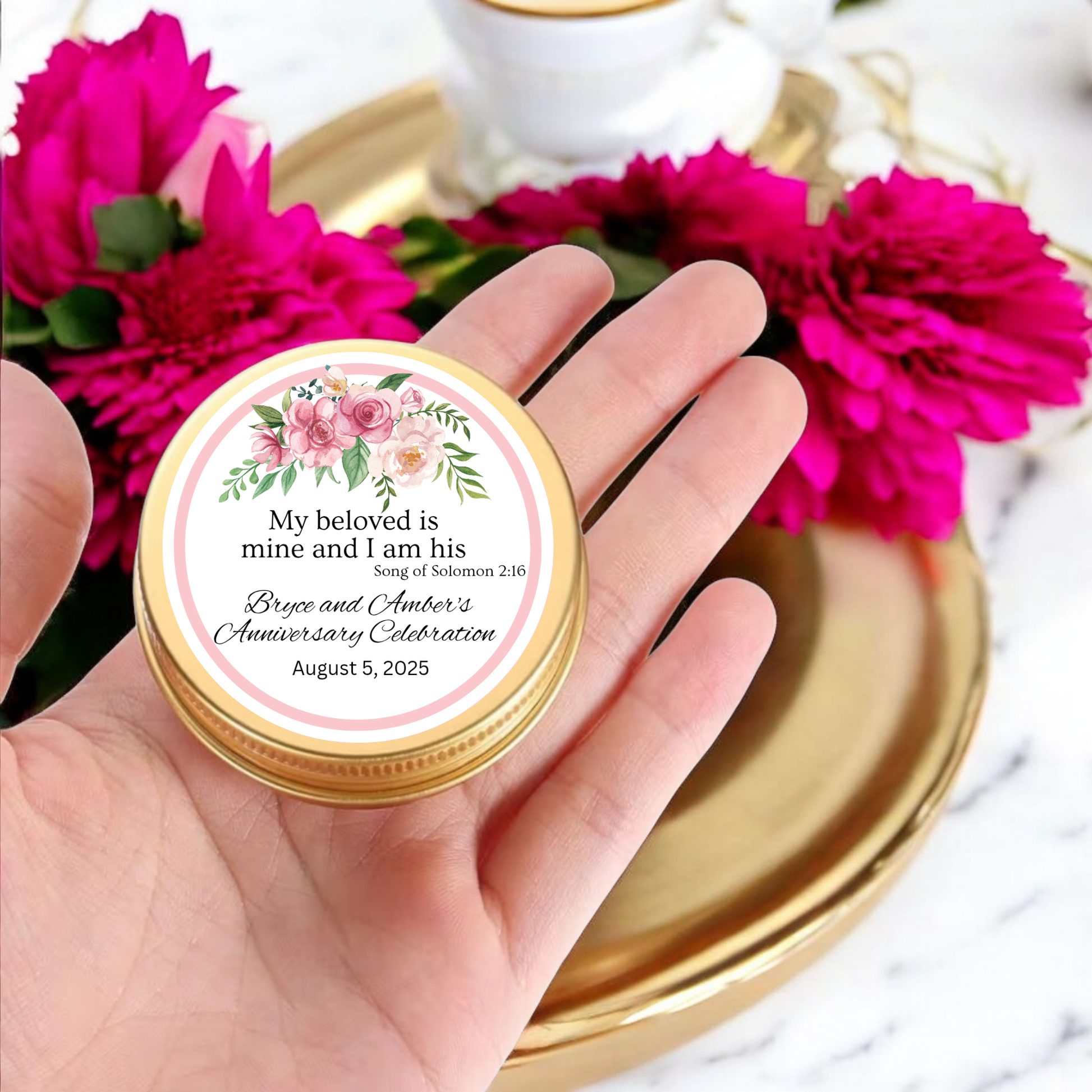 💌 Custom Label with Scripture - Features couple’s names, anniversary date, and Bible verse Song of Solomon 2:16, making these wedding favors a heartfelt keepsake.
