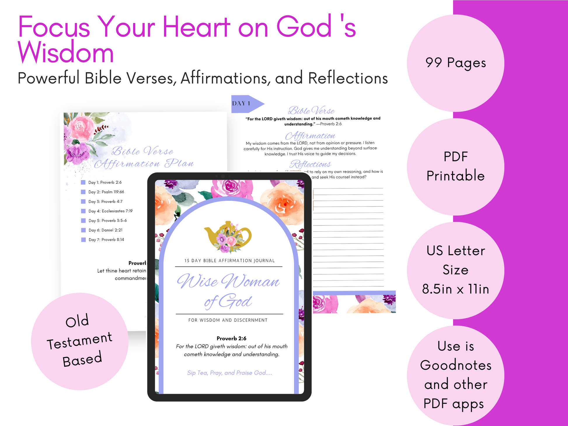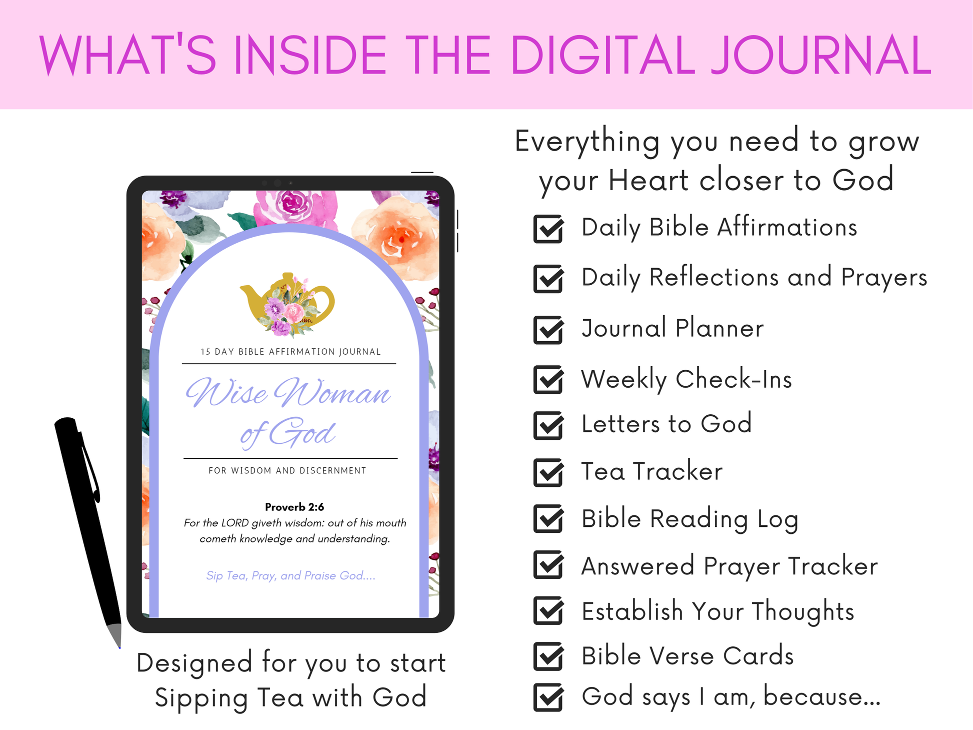 💻 15 Day Bible Affirmation Digital Journal (99 pages) - A beautifully designed faith-based reflection companion featuring daily Scripture prompts, prayer space, journaling pages, and intentional tea moments to help you examine your heart, remove distractions, and realign your devotion fully to God.