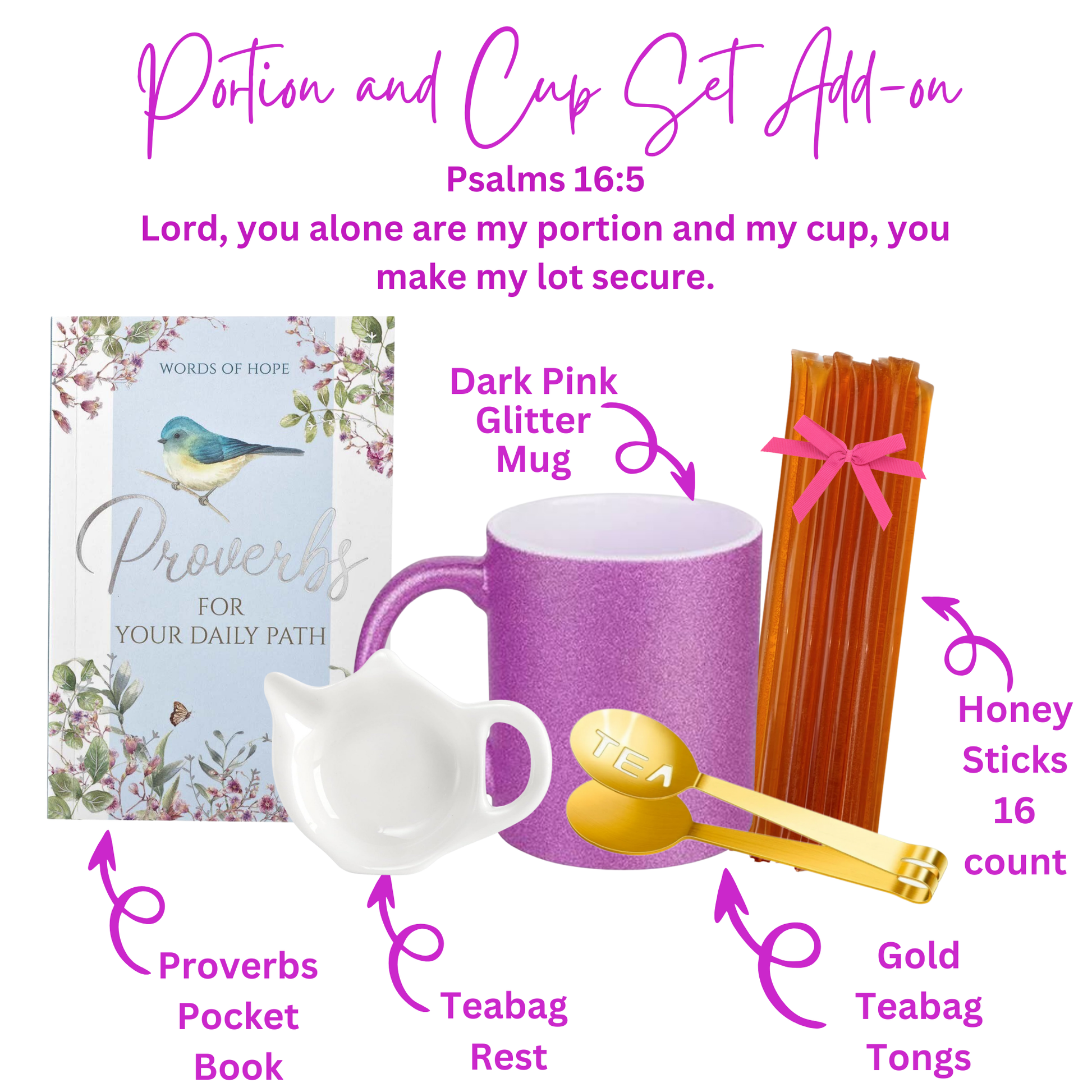 ☕️ Portion and Cup Set - Includes tea essentials to enhance your bible and tea time.